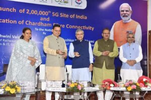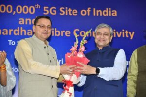 देहरादून।मुख्यमंत्री पुष्कर सिंह धामी एवं केंद्रीय संचार एवं रेल मंत्री अश्विनी वैष्णव ने बुधवार को मुख्यमंत्री आवास स्थित मुख्य सेवक सदन में उत्तराखण्ड के पवित्र धाम गंगोत्री में संपूर्ण देश के 2 लाख वीं 5G साइट व चारधाम में फाइबर कनेक्टिविटी के कार्य का शुभारंभ भी किया। मुख्यमंत्री धामी ने उत्तराखण्ड के डिजिटल परिदृश्य में क्रांतिकारी बदलाव लाने हेतु केंद्रीय संचार एवं रेल मंत्री श्री वैष्णव का आभार व्यक्त करते हुए कहा कि आज देवभूमि आने वाले श्रद्धालुओं को 5G के तौर पर एक शानदार उपहार मिल रहा है।