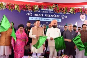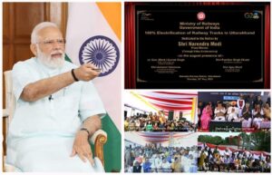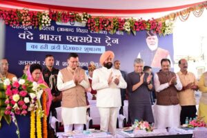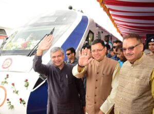 देहरादून।प्रधानमंत्री नरेंद्र मोदी ने आज वर्चुअली हरी झंडी दिखाकर VandeBharat Express का देहरादून रेलवे स्टेशन से शुभारंभ किया व उत्तराखण्ड के समस्त रेल मार्गों के लिए विद्युतीकरण की सौगात भी दी।