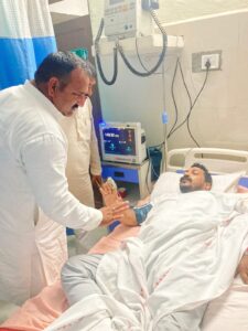 चंद्रशेखर रावण से हाल-चाल की जानकारी लेते रालोद सहारनपुर मंडल अध्यक्ष प्रभात तोमर
