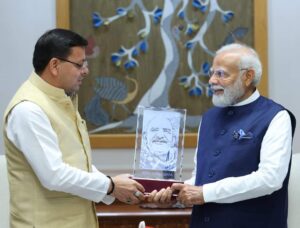 देहरादून।मुख्यमंत्री पुष्कर सिंह धामी ने नई दिल्ली में प्रधानमंत्री नरेंद्र मोदी से शिष्टाचार भेंट की और उन्हें बाबा नीब करौरी जी का चित्र और उत्तराखण्ड का बासमती चावल भेंट किया।