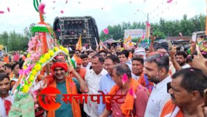 समान नागरिक संहिता बिल के समर्थन में कावड़ ला रहे केंद्रीय मंत्री डॉ संजीव बालियान आज अपनी कावड़ यात्रा के तीसरे दिन यूपी बॉर्डर पर भुराहेड़ी चेक पोस्ट पर पहुचने पर हुआ हुआ जोरदार स्वागत