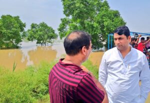मुजफ्फरनगर। मुजफ्फरनगर के प्रभारी मंत्री व उत्तर प्रदेश सरकार में ऊर्जा राज्य मंत्री डा0 सोमेन्द्र तोमर शुक्रवार को जनपद पहुंचे, जहां उन्होनें बाढ़ प्रभावित क्षेत्र तहसील जानसठ, ब्लॉक मोरना, नगर पंचायत भोकरहेड़ी में बाढ़ से प्रभावित ग्राम मजलीसपुर तौफीर, नया गांव, महराजपुर, सीतबपुर, खैरनगर का दौरा किया और पीड़ितों का हाल चाल जाना और राहत सामग्री का वितरण भी किया। प्रभारी मंत्री ने पानी निकासी की व्यवस्था, आवश्यक चिकित्सा सेवा एवं भोजन, पशुओं के लियें चारे की व्यवस्था तथा अन्य सुविधाएं उपलब्ध कराने के निर्देश दिए। उपरान्त पीड़ितों के बीच राहत सामग्री का वितरण किया। उसके बाद प्रभारी भोकरहेड़ी इंटर कॉलिज में पीड़ितों के लियें बने आश्रय स्थल का निरीक्षण कर वहां की व्यवस्थाओं का जायजा लिया। प्रभारी मंत्री ने ग्रामीणों से कहा कि प्रशासन द्वारा उपलब्ध कराए गए शरणालय में निवास करें और हर सम्भव सहायता प्रशासन द्वारा समय पर उपलब्ध कराई जाएगी।