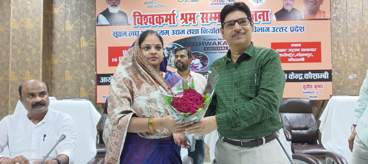 प्रदेश के मुख्यमंत्री द्वारा विश्वकर्मा जयन्ती के पूर्व संध्या पर लखनऊ में आयोजित समारोह में “विश्वकर्मा श्रम सम्मान योजना” के लाभार्थियों को टूलकिट वितरित किया। इसका सजीव प्रसारण उदयन सभागार में आयोजित कार्यक्रम में किया गया तथा उपस्थित उद्यमी व व्यापारीगण एवं लाभार्थियों ने मुख्यमंत्री के सम्बोधन को सुना।