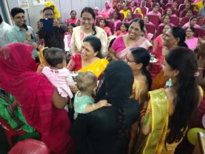 मुख्य अतिथि विनीता त्रिवेदी ने गर्भवती महिलाओं की गोदभराई एवं बच्चों को कराया अन्नप्राशन