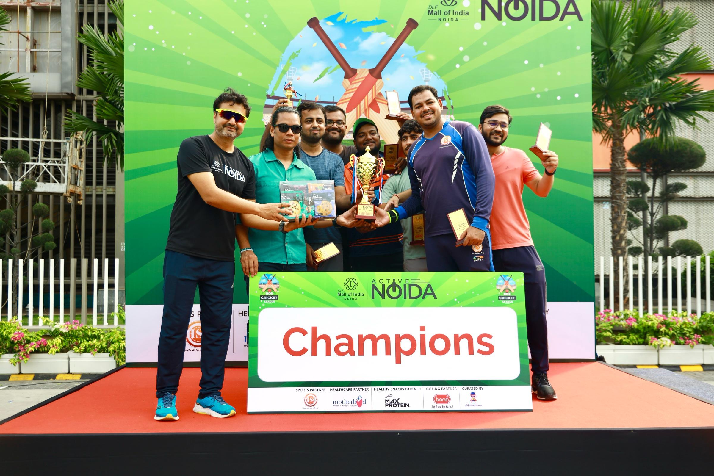 नोएडा। डीएलएफ मॉल ऑफ इंडिया ने एक्टिव नोएडा के तहत बॉक्स क्रिकेट लीग का आयोजन किया। इस दौरान 9 टीमों के बीच जबरदस्त मुकाबला देखने को मिला। लीग में सुखदेव विहार रॉयल्स टीम विजेता रही, इसका नेतृत्व हर्षदीप सेठी ने किया। टीम को व्यक्तिगत ट्रॉफियों के साथ-साथ नगद राशि देकर सम्मानित किया गया।