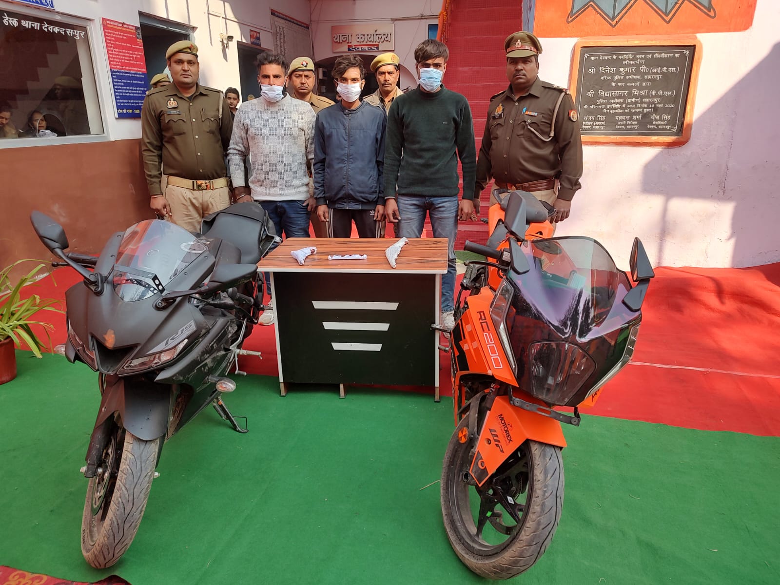 देवबंद पुलिस ने मुठभेड़ के बाद तीन अपराधियों को गिरफ्तार किया है। जबकि आरोपी बदमाशों के चार साथी पुलिस को चकमा देकर मौके से फरार हो गए। गिरफ्तार बदमाशों के पास से पुलिस ने दो बिना नंबर की बाइक और अवैध तमंचे बरामद किए हैं।