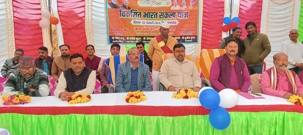जिलाधिकारी ने कार्यक्रम को सम्बोधित करते हुए कहा कि भारत सरकार द्वारा “विकसित भारत संकल्प यात्रा” कार्यक्रम संचालित किया जा रहा हैं। यह कार्यक्रम 26 जनवरी 2024 तक संचालित किया जायेंगा। उन्होंने कहा कि “विकसित भारत संकल्प यात्रा” कार्यक्रम का उद्देश्य-सरकार द्वारा संचालित जनकल्याणकारी योजनाओं के बारे में आमजन/विशेषकर वंचित लोगों को जागरूक करना, विभिन्न योजनाओं के अन्तर्गत छूटे हुए पात्र लोगों को चिन्हित कर लाभान्वित करना तथा लाभान्वित लाभार्थियों से उनके अनुभव/फीडबैक प्राप्त करना है। उन्हांने ग्रामवासियों से कहा कि विभिन्न विभागों द्वारा लगाये गये स्टॉल के माध्यम से योजनाआें की जानकारी प्राप्त कर लाभान्वित हों तथा किसान सम्मान निधि, राशन कार्ड एवं आवास आदि के लिए आवेदन/पंजीकरण करा लें, जिससे पात्रता की स्थिति में लाभान्वित किया जा सकें। उन्हांने कहा कि सरकार द्वारा अनेक जनकल्याणकारी योजनायें संचालित की जा रहीं है, योजनाओं की विस्तृत जानकारी प्राप्त कर लाभ उठायें।