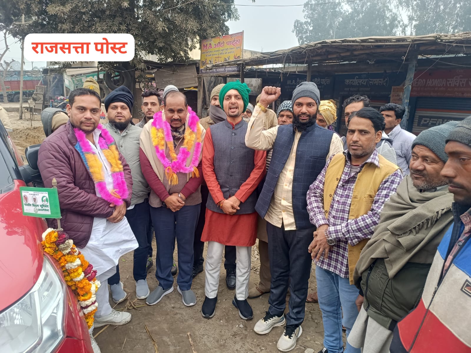 मुजफ्फरनगर जनपद के चरथावल पहुंचे भारतीय किसान यूनियन अराजनैतिक के राष्ट्रीय प्रवक्ता धर्मेंद्र मलिक एवं युवा जिलाध्यक्ष अक्षु त्यागी का भाकियू ब्लॉक अध्यक्ष चरथावल कुशलवीर सिंह,युवा सदर तहसील अध्यक्ष शाहनजर त्यागी व वरिष्ठ किसान नेता दानिश प्रधान के नेतृत्व में किसानों ने फूल मालाओ से जोरदार स्वागत किया इस मौके पर धर्मेंद्र मलिक ने कहा की भाकियू अराजनेतिक किसानों के हक की लड़ाई लड़ रही है।तथा गन्ना मूल्य बढ़ोतरी की मांग कर रही है।जिसके लिए कई दिन से मुजफ्फरनगर क्लैक्ट्रेट पर धरना चल रहा है आज गांव चौकड़ा में किसानो की पंचायत में पहुंचकर किसानों को धरना प्रदर्शन में अधिक से अधिक पहुंचने का आह्वान करेंगे उन्होंने कहा की सभी किसान गन्ना तुलवाने के लिए जाते समय गन्ना मूल्य बढ़ोतरी का बैनर,अपनी बोगी व ट्रेक्टर ट्राली पर लगाकर चले ताकि सभी को पता चले की भाकियू अराजनैतिक किसानो के लिए गन्ना मूल्य बढ़ोतरी हेतु लड़ाई लड़ रही है।