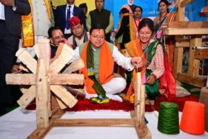 देहरादून।आज मुख्यमंत्री पुष्कर सिंह धामी ने नारीशक्ति वन्दन महोत्सव कार्यक्रम में प्रतिभाग कर उत्तरायणी पर्व की बधाई एवं शुभकामनाएं दी। इस दौरान उन्होंने कार्यक्रम में विभिन्न महिला समूहों द्वारा लगाए गए स्टॉल का निरीक्षण किया। उन्होंने कहा कि हमारी सरकार मातृ शक्ति की प्रतिभा और कौशल को पहचान कराने का कार्य कर रही है। उन्होंने मातृ शक्ति से आहवान किया कि घर-घर जाकर राम दीपोत्सव पर्व मनाने के लिए लोगों को जागरूक करें। मुख्यमंत्री ने कहा कि प्रधानमंत्री नरेन्द्र मोदी जी के नेतृत्व में महिला सशक्तिकरण के क्षेत्र में नए भारत की शानदार तस्वीर प्रस्तुत हुई है। महिलाओं को ’’सुविधा के साथ सुरक्षा भी’’ के सिद्धांत पर महिला सशक्तिकरण के क्षेत्र में क्रांतिकारी बदलाव किए गए हैं।