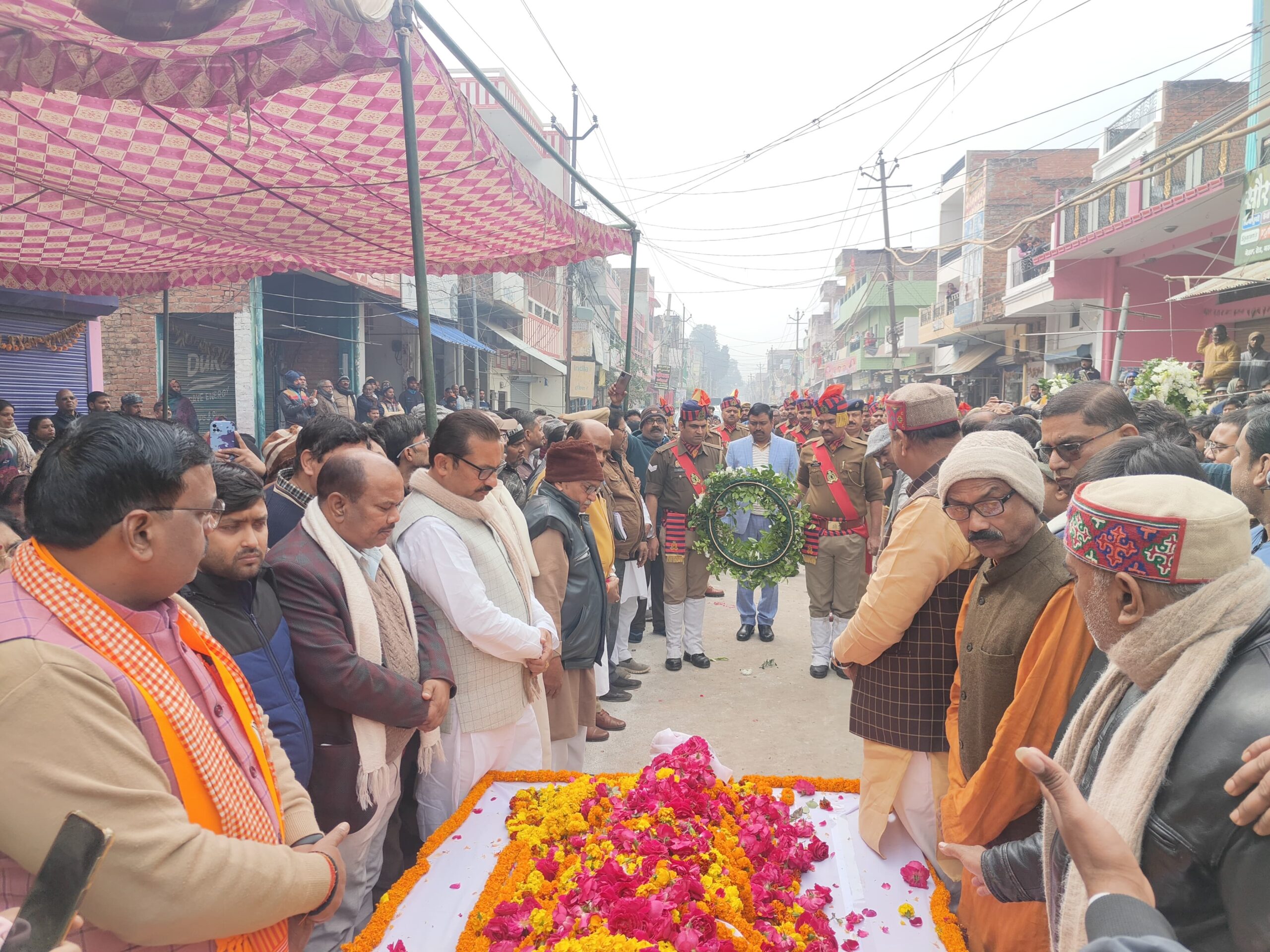 सांसद विनोद कुमार सोनकर, भाजपा जिलाध्यक्ष धर्मराज मौर्य, पूर्व विधायकगण संजय कुमार गुप्ता,लाल बहादुर व शीतला प्रसाद उर्फ पप्पू पटेल, पूर्व भाजपा जिलाध्यक्ष अनीता त्रिपाठी तथा मीडिया प्रभारी उप मुख्यमंत्री भोले शंकर सहित अन्य गणमान्य व्यक्तियों ने पुष्प अर्पित कर श्रद्धांजलि दी।