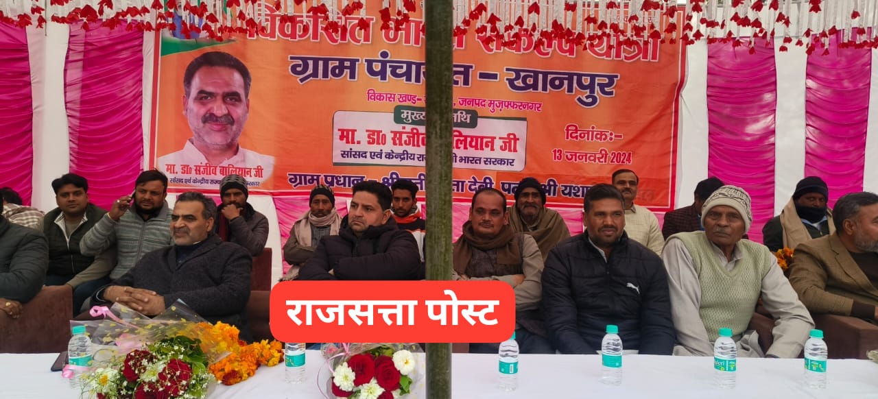 मुजफ्फरनगर।खतौली विकास खंड के गांव खानपुर में केंद्रीय राज्यमंत्री डॉ संजीव बालियान ने विकसित भारत संकल्प यात्रा में हुए शामिल,केंद्रीय राज्यमंत्री डॉ संजीव बालियान ने विकसित भारत संकल्प यात्रा को संबोधित करते हुए कहा जब भारत अपने आजादी के 100 साल पूरे कर रहा होगा तो उस समय का भारत कैसा होगा इस संकल्पना को साकार करते हुए भारतीय जनता पार्टी और प्रधानमंत्री मोदी जी इस विकसित भारत के संकल्प यात्रा को लेकर आगे बढ़ रहे है।
