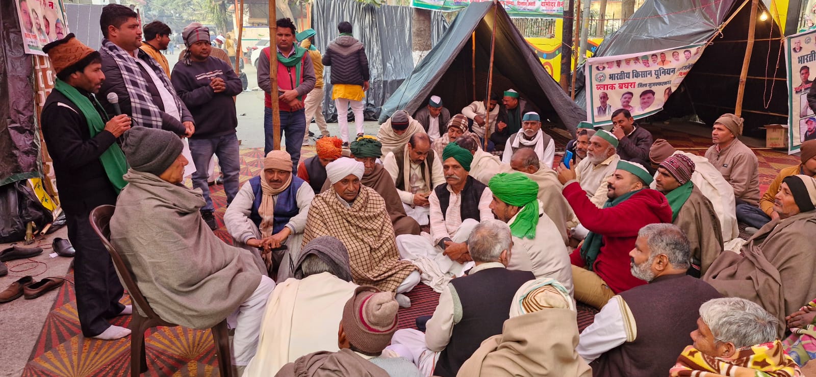 धरने पर जनपद गौतमबुद्धनगर के किसानो ने भाग लेकर सहयोग एवं समर्थन का आश्वाशन दिया।