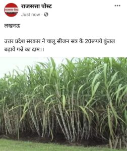 भारतीय किसान यूनियन अराजनीतिक के राष्ट्रीय प्रवक्ता ने सरकार द्वारा बढ़ाए गए गन्ना मूल्य को न कही बताया धर्मेंद्र मलिक ने कहा कि पिछले साल भी गन्ना मूल्य में बढ़ोतरी नहीं हुई थी इस बार कम से कम हरियाणा और पंजाब जितना गन्ने का भाव तो होना चाहिए था ।