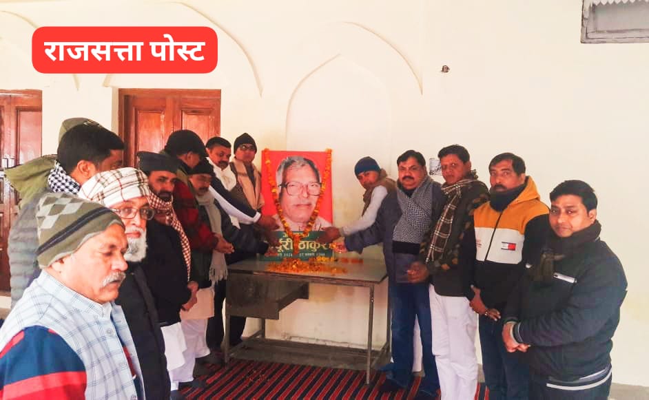 समाजवादी पार्टी कार्यालय पर आयोजित समाजवादी चिंतक व जननायक स्व:कर्पूरी ठाकुर शताब्दी जयंती के अवसर पर आयोजित कार्यक्रम में उनके चित्र पर पुष्प अर्पित कर विचार गोष्ठी में सपा जिलाध्यक्ष ज़िया चौधरी एडवोकेट सपा राष्ट्रीय सचिव राकेश शर्मा व सपा महानगर अध्यक्ष पुष्पेंद्र त्यागी बॉबी द्वारा अपने सम्बोधन में कर्पूरी ठाकुर को समाजवादी विचारधारा का वाहक बताते हुए पिछड़ी व अति पिछड़ी जातियों को एकजुट करके उनके राजनीतिक अधिकारों की लड़ाई लड़ने वाला नायक तथा गरीब वंचितों की मजबूत आवाज़ बताकर उनको श्रद्धांजलि अर्पित की।