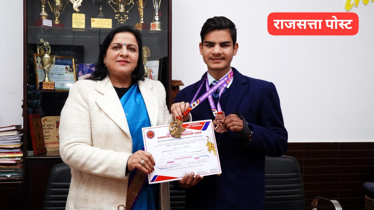 प्रधानाचार्य सीमा शर्मा ने बताया कोलकाता में तीन दिवसीय नेशनल कराटे चैंपियनशिप का आयोजन किया गया था । इनविटेशनल नेशनल सोतोकान कराटे चैंपियनशिप में अंडर-15 में द दून वैली पब्लिक स्कूल, देवबंद के छात्र शोमित सिंह ने फाइट में गोल्ड और काता में ब्रोंज मेडल जीतकर स्कूल का गौरवान्वित कर जनपद व प्रदेश का नाम रोशन किया । स्कूल चेयरमैन राजकिशोर गुप्ता जी व प्रधानाचार्या सीमा शर्मा जी ने चयनित छात्र व उनके अभिभावको के साथ-साथ स्कूल के शारीरिक शिक्षा के अध्यापकों को शुभकामनाएं देते हुए व कहा कि विद्यालय के खिलाड़ियो को अपनी प्रतिभा प्रदर्शित के लिए हर संभव अवसर व सहयोग प्रदान किया जायेगा ।