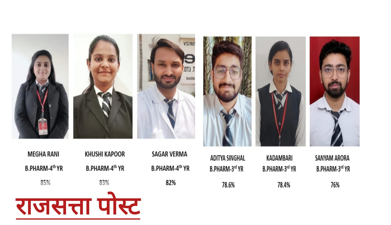 किया करते हुए परीक्षा परिणामों में बीफार्मा के सातवें सेमेस्टर से मेघा ने 85 प्रतिशत अंकों के साथ प्रथम स्थान, खुशी ने 83 प्रतिशत अंकों के साथ द्वितीय स्थान व सागर ने 82 प्रतिशत अंकों के साथ तृतीय स्थान प्राप्त किया। छात्रों की इस उपलब्धि पर उनके परिवार और कॉलेज में हर्ष उल्लास का माहौल बना हुआ है। छात्रों ने अपनी सफलता का श्रेय श्री राम कॉलेज ऑफ़ फार्मेसी की शिक्षा प्रणाली को दिया। जिसमें उन्हें प्रयोगात्मक परीक्षाओं का निरंतर अभ्यास कराया । जिस कारण उन्होंने यह लक्ष्य आसानी से प्राप्त कर लिया।