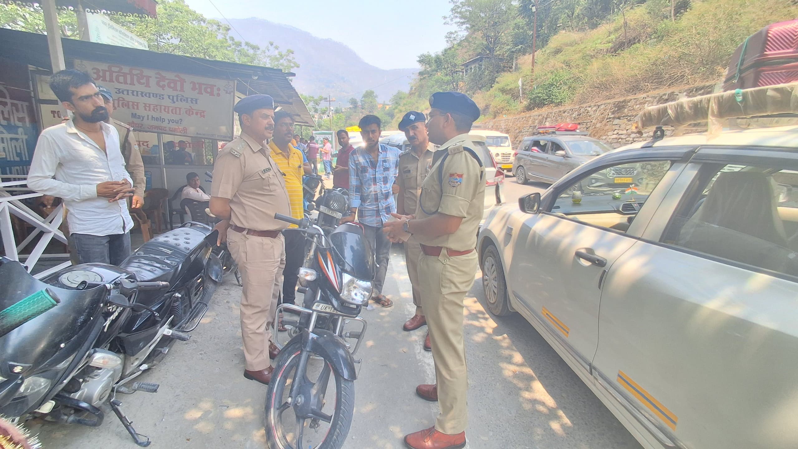 चमोली, शुक्रवार 17 मई:वर्तमान में प्रचलित चारधाम यात्रा में प्रत्येक दिन हजारों की संख्या में श्रद्धालु का श्री बद्री धाम के दर्शनार्थ हेतु पहुँच रहे हैं। आज पुलिस अधीक्षक चमोली सर्वेश पंवार ने जनपद के प्रवेश बैरियर पर गौचर पंजीयन केन्द्र पर पहुँचकर यात्रा व्यवस्थाओं का निरीक्षण कर सम्बन्धित को निर्दशित किया कि निर्धारित तिथि का पंजीकरण होने पर ही यात्रियों/वाहनों को जाने दिया जाएगा। कतिपय यात्री वाहन बिना पंजीकरण के ही जनपद में आ रहे हैं ऐसे वाहनों को प्रवेश नहीं दिया जाएगा तथा पंजीकरण के उपरान्त निर्धारित तिथि को ही श्री बद्रीनाथ धाम यात्रा पर आने के हेतु बताया गया साथ ही सम्बन्धित को पंजीकरण केन्द्र पर आने वाले तीर्थयात्रियों हेतु पेयजल की व्यवस्था करने हेतु निर्देशित किया गया।