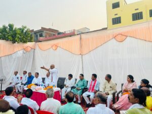 वाराणसी,शनिवार 25 मई: शुक्रवार शाम इंडिया गठबंधन प्रत्याशी अजय राय के समर्थन में त्यागी भूमिहार बाहुल्य गांव सुसुवाही के पंचायत भवन में एक चुनावी जनसभा का आयोजन किया गया गया, चुनावी सभा को संबोधित करते हुए त्यागी भूमिहार ब्राह्मण समाज समिति के राष्ट्रीय अध्यक्ष मांगेराम त्यागी ने आने वाली 1 जून को कांग्रेस सपा गठबंधन प्रत्याशी अजय राय के समर्थन में वोट करने की अपील की,मांगेराम त्यागी ने कहा झूठ का ढिंढोरा पिट झूठ के सहारे जनता को अधिक समय तक भृमित नहीं किया जा सकता जनता सरकार के झूठ से परेशान हो चुकी है अब वह परिवर्तन देखना चाहती है।