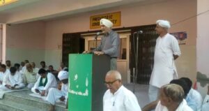 भारतीय किसान यूनियन राजनैतिक के उपाध्यक्ष चौधर मांगे राम त्यागी ने कहा कि आज किसान की हालत बहुत ही खराब है ।सरकार किसानों की जमीन को हड़पना चाहती है ।आज की सरकार किसानों को इतना मजबूर कर देगी कि किसान खुद ही जमीन छोड़ने के लिए तैयार हो जाएंगे। आज देश में कोई भी किसान ऐसा नहीं है जिसकी जमीन बैंक के पास गिरवी न रक्खी गई हो ।हर साल किसान कर्ज के बोझ के नीचे दबता जा रहा है। सरकार दिन प्रतिदिन किसानों का शोषण कर रही है ,ऐसे में हम सभी को अपनी जमीन बचाने के लिए एकजुट होकर संघर्ष करना होगा ।जिस दिन हमारा संघर्ष मजबूत होगा, किसान संगठित होगा, उस दिन इस देश में किसानों का राज होगा। अब किसान सड़क पर है और सरकार के खिलाफ आंदोलन कर रहा है। किसान जितौड़ खेतों में मेहनत कर रहा है फिर भी किसानों को उसकी मेहनत का फल नहीं मिल पा रहा है। ऐसी हालत में एक दिन ऐसा आएगा कि किसान आत्महत्या करने के लिए मजबूर होगा और हमारी फसल हमारी जमीन पर उद्योगपतियों का कब्जा होगा। इसलिए एक बड़े आंदोलन के लिए हमें एकजुट होकर संगठित होकर रहना होगा।