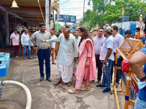 जनपद मुजफ्फरनगर में आज मीनाक्षी चौक सिटी सेंटर के सामने बने कांवड़ शिविर में ईओ नगरपालिका प्रज्ञा सिंह द्वारा निरीक्षण किया गया जिसमे साफ़ सफ़ाई व्यवस्था बनाये रखने हेतु तथा शिविर को प्लास्टिक मुक्त तथा जीरो वेस्ट बनाने हेतु शिविर संचालकों से वार्ता की गई तथा खुले में चल रहे स्नानगृह का अलग पर्दा लगाने हेतु निवेदन किया गया