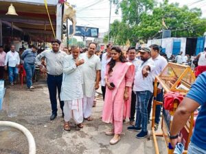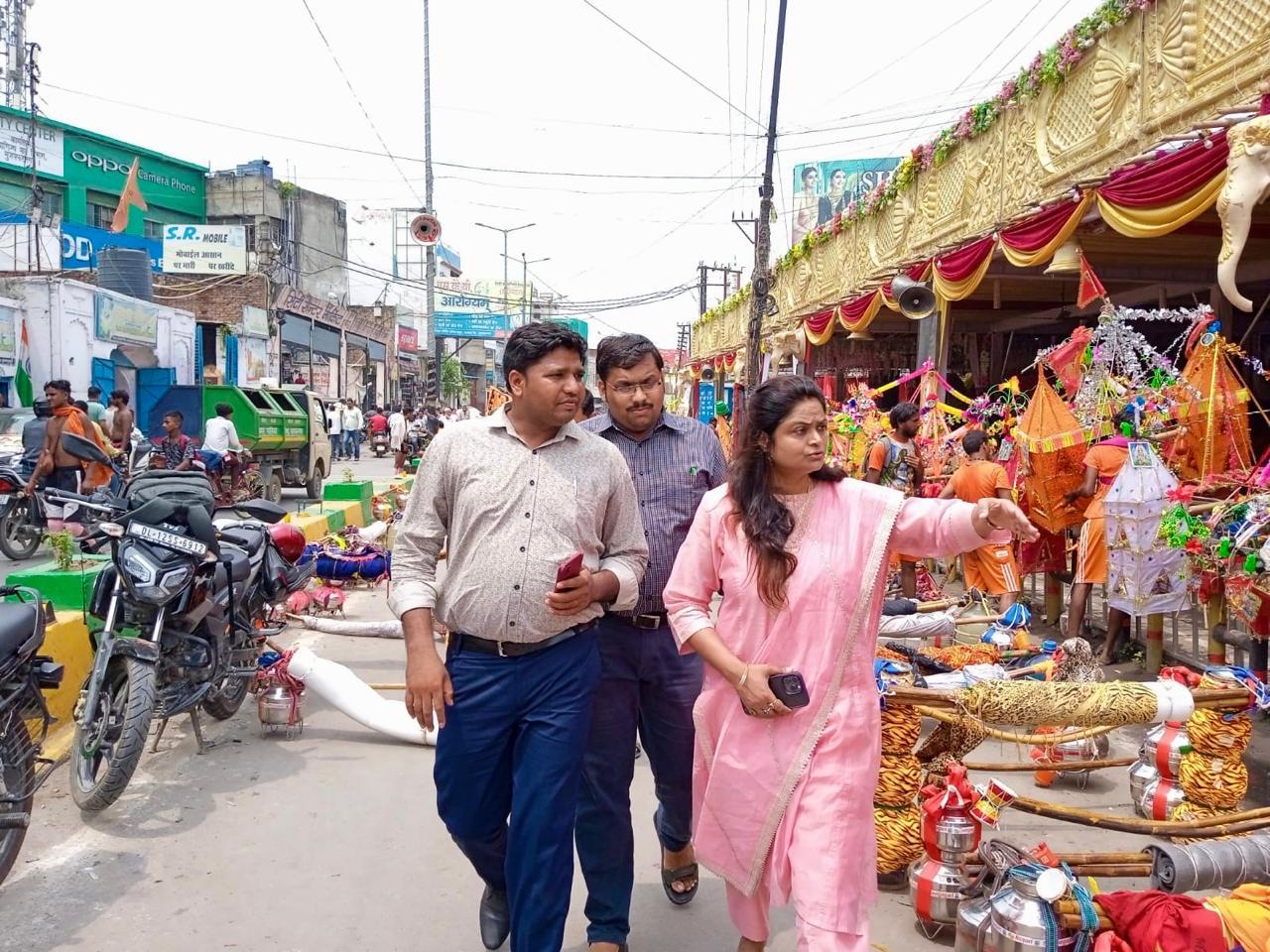 कांवड़ियों की सुविधा हेतु मोबाइल टॉयलेट का स्थल परिवर्तित किया जा रहा शिविर संचालकों ने अपनी व्यवस्था दिखलायी कि जीरो वेस्ट प्लास्टिक मुक्त शिविर के सभी निर्देशों का पालन किया जा रहा है खाने पीने की व्यवस्था पत्तल या पेपर ग्लास का प्रयोग किया जा रहा है प्लास्टिक की ग्लास प्लेट चम्मच का प्रयोग नहीं किया जा रहा ईओ प्रज्ञा सिंह निरीक्षण के दौरान संतुष्ट नजर आई।