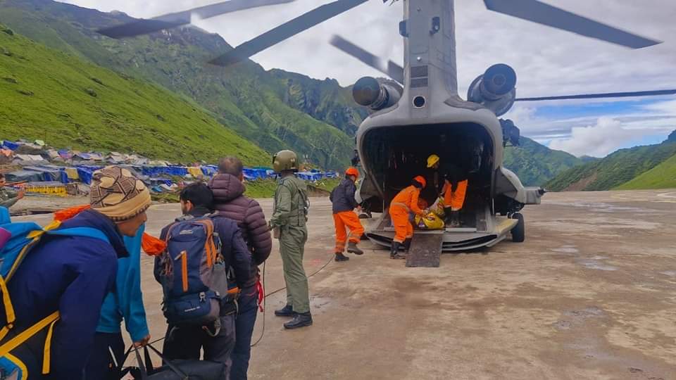 आज प्रातःकाल केदार घाटी का मौसम साफ होने के साथ ही एमआई-17 और चिनूक से एयर लिफ्ट रेस्क्यू शुरू हो गया है। जहां एमआई-17 चारधाम हेलीपैड गुप्तकाशी पर यात्रियों को उतार रहा है जबकि चिनूक गौचर हवाई पट्टी पर यात्रियों को उतार रहा है। वहीं लिंचोली एवं भीमबली तक पहुंचे यात्रियों को हैलीकॉप्टर से नीचे लाया जा रहा है। आज अब तक कुल 340 यात्रियों को केदारनाथ, लिंचोली व भीमबली से सुरक्षित एयरलिफ्ट किया गया है। सुरक्षित पहुंचे यात्रियों के स्तर से उत्तराखण्ड सरकार व स्थानीय प्रशासन व रेस्क्यू टीमों का आभार प्रकट किया गया है।