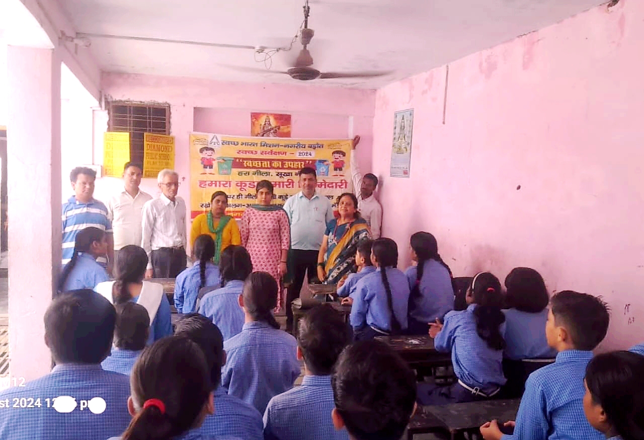 नगर पालिका परिषद बड़ौत व आईटीसी मिशन सुनहेरा कल के सहयोग से वार्ड नंबर 19 में किसान डायमंड पब्लिक जूनियर हाईस्कूल में स्वच्छता चैंपियन मीनाक्षी सिसोदिया व आईटीसी के क्लस्टर सुपरवाइजर सुनील कुमार द्वारा स्कूल के समस्त शिक्षकगण व छात्र-छात्राओं को स्वच्छ भारत मिशन की जानकारी दी गई। उन्हें स्वच्छ भारत मिशन नगरीय के अंतर्गत स्वच्छ पाठशाला टू प्वाइंट जीरो के तहत 12 अगस्त को अंतरराष्ट्रीय युवा दिवस पर स्वच्छ सारथी क्लब को सम्मानित किए जाने वाले प्रोग्राम की जानकारी दी गई। छात्र- छात्राओं को रंगोली, चित्रकला, वाद विवाद एवं रिसाइकलिंग से बनी राखी प्रतियोगिता के लिए प्रेरित किया गया। साथ ही समस्त स्टाफ, छात्र- छात्राओं को आईटीसी के सामुदायिक नेतृत्व में विकेंद्रीकृत ठोस कचरा प्रबंधन कार्यक्रम के अंतर्गत कचरा क्या है ,कचरे के प्रकार ,मोहल्ला समिति गठन, मोहल्ला समिति पदाधिकारी के कार्य, होम कंपोस्टिंग, कम्युनिटी कंपोस्टिंग की जानकारी दी गई। साथ ही समस्त स्टाफ को स्वच्छता शपथ दिलाई गई। इस दौरान नगर पालिका परिषद के सफाई खाद्य निरीक्षक वीरेंद्र सिंह तेवतिया सफाई एवं खाद्य निरीक्षक सत्येंद्र सिंह मीनाक्षी सिसोदिया स्वच्छता चैंपियन आईटीसी मिशन सुनहेरा कल के क्लस्टर सुपरवाइजर सुनील कुमार प्रधानाचार्य संजीव कुमार, सफाई नायक पिंकी राम सुपरवाइजर सोनू कुमार, मोहित शर्मा व अन्य शिक्षकगण उपस्थित रहे।