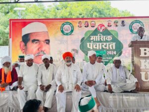 उत्तर प्रदेश के जनपद मुजफ्फरनगर स्थित किसान भवन सिसौली में आयोजित भारतीय किसान यूनियन की मासिक पंचायत मैं आज दूर दराज के जनपदों से आए किसानों के साथ-साथ संगठन के पदाधिकारी व क्षेत्र के किसानों ने हिस्सा लिया।