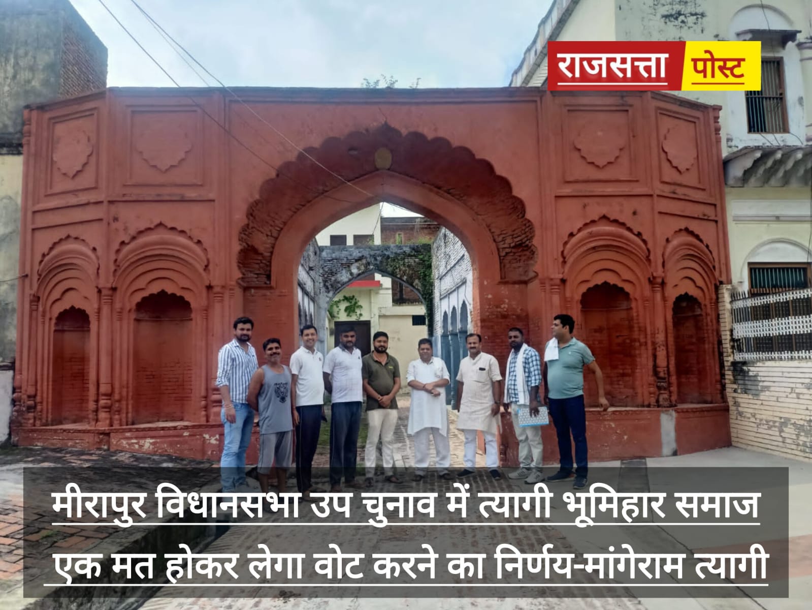 आज जनपद मुजफ्फरनगर के मीरापुर विधानसभा में होने वाले उपचुनाव के संबंध मे सभी त्यागी भूमिहार समाज के बाहुल्य गांव के समस्त ग्राम वासियों ने मांगेराम त्यागी (राष्ट्रीय अध्यक्ष त्यागी भूमिहार ब्राह्मण समाज समिति) से मिलकर होने वाले विधानसभा उपचुनाव के बारे में सलाह मशविरा किया, बहुत ही गहन विचार विमर्श करने पश्चात सभी ग्रामवासियों ने एक मत होकर जल्द ही कोई बड़ा निर्णय लेने की घोषणा की साथ में श्री विदित त्यागी, सोनू त्यागी, राहुल त्यागी, हरिओम त्यागी, विजित त्यागी, राहुल त्यागी, सुभाष त्यागी, बिट्टू त्यागी, विनय त्यागी, संजय त्यागी सोनू त्यागी कुलबीर त्यागी आदि लोग उपस्थित रहे।।