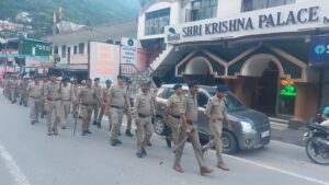 आगामी त्यौहारों के मद्देनज़र चमोली पुलिस ने किया फ्लैग मार्च, शांतिपूर्ण आयोजन की अपील