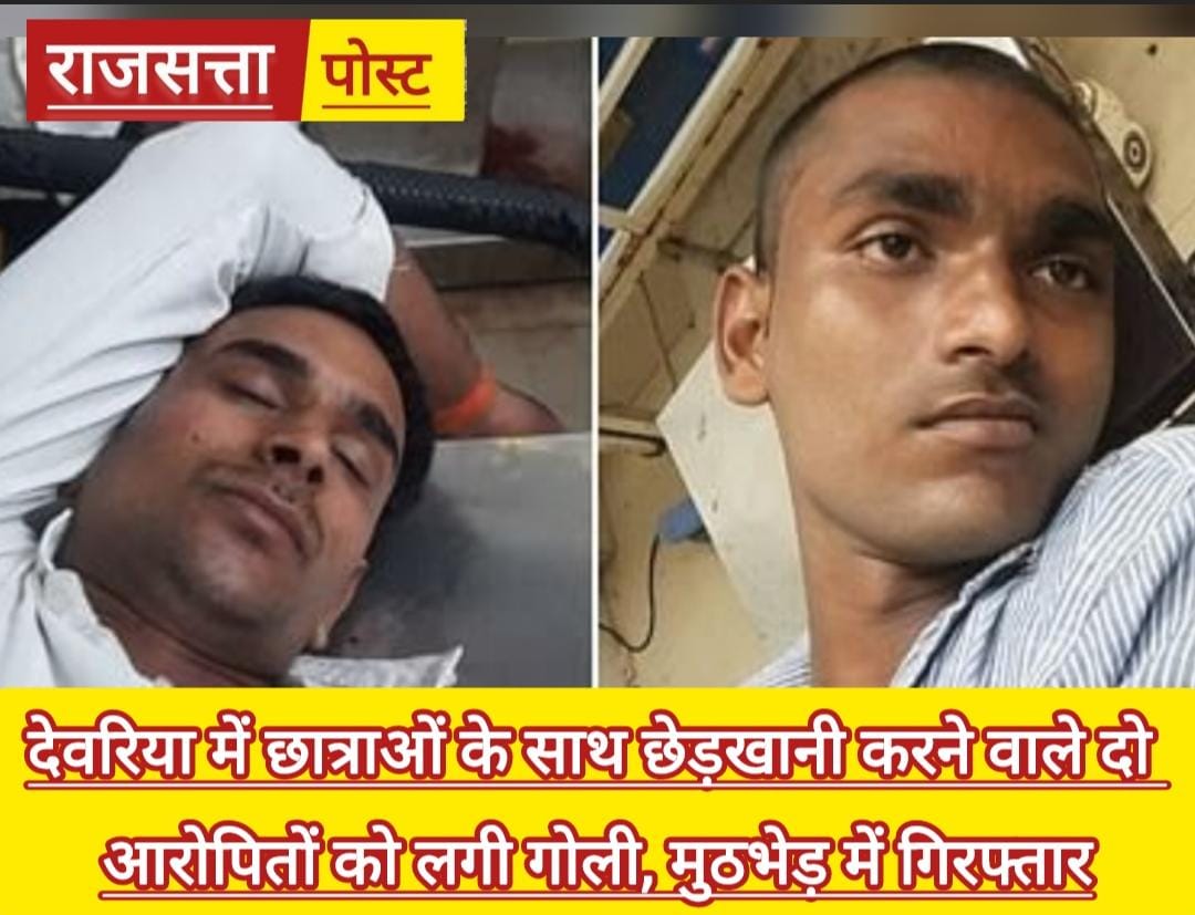 देवरिया में 4 सितंबर को CCTV में कैद कक्षा आठ की दो छात्राओं से हुई छेड़खानी में फरार चल रहे मनचलों की पुलिस मुठभेड़ में गिरफ्तारी हुई है. पुलिस ने हाफ एनकाउंटर के बाद दो आरोपियों को पकड़ लिया है. दोनों के पैर में गोली लगी है. जबकि दो आरोपी अभी भी पुलिस की पहुंच से दूर हैं. पकड़े गए मनचलों के नाम रितिक यादव और धीरज पटेल हैं. दोनों थाना तरकुलवा के बंजरिया के रहने वाले हैं.दोनों शोहदों के पैर में गोली लगी है। इनके पास से दो तमंचे मिले हैं।