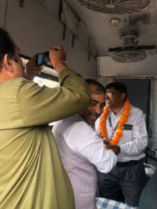 ट्रेन के लोको पायलट का किया फूल मालाओं से स्वागत