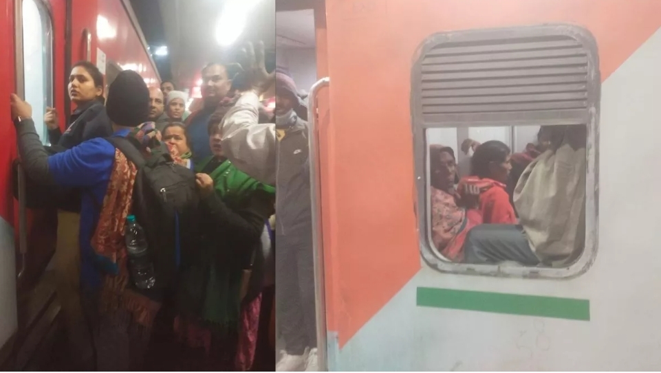 यात्रियों की शिकायत पर आरपीएफ की महिला उप निरीक्षक राधा तोमर और उनकी टीम ने अंदर से बंद एसी बोगी का दरवाजा खोलने का प्रयास किया। किसी तरह यात्रियों को अंदर चढ़ाया गया। वहीं, महिला श्रद्धालु इस ट्रेन के शौचालय में सफर करने को मजबूर दिखीं।