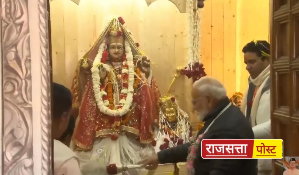 देहरादून:एक दिवसीय दौरे पर उत्तरकाशी पहुंचे प्रधानमंत्री नरेंद्र मोदी ने मुखवा गांव में मां गंगा के शीतकालीन गद्दी स्थल पर पूजा-अर्चना कर देशवासियों के लिए सुख-समृद्धि की कामना की। प्रधानमंत्री ने धार्मिक विधि-विधान से मां गंगा की पूजा कर भोग चढ़ाया। इस दौरान स्थानीय ग्रामीणों ने रांसों नृत्य से प्रधानमंत्री का स्वागत किया।