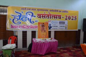 त्यागी सभा भवन जनपद मुजफ्फरनगर की कार्यकारिणी की ओर से आज होली मिलन के साथ पारिवारिक मिलन के कार्यक्रम का आयोजन हुआ जिसमें समाज के प्रमुख लोग उपस्थित रहे डॉक्टर इंजीनियर अधिवक्तागण सैकड़ो की संख्या में परिवार सहित लोग उपस्थित रहे और इस वर्ष होली मिलन के साथ पारिवारिक मिलन के कार्यक्रम को सांस्कृतिक और आध्यात्मिक रूप से पुष्प वर्षा के साथ आयोजित किया गया जिसमें प्रातः वैदिक विधि द्वारा यज के माध्यम से और और दोपहर बाद भजन के माध्यम से और सांस्कृतिक कार्यक्रमों के माध्यम से होली मिलन का कार्यक्रम संपन्न कराया गया जिसमें भाजपा नेता देवव्रत त्यागी सपा नेता प्रमोद त्यागी धर्मेंद्र त्यागी संजीव त्यागी पुरा मंगल त्यागी अशोक त्यागी उमेश त्यागी दर्शन लाल त्यागी के साथ काफी युवा साथी और सम्मानित प्रबुद्ध जन उपस्थित रहे कार्यक्रम में मुख्य सहयोगी माउंट लिट्रा स्कूल के नवनीत भारद्वाज व प्रीति भारद्वाज का रहा और कार्यक्रम त्यागी सभा भवन के मंत्री ललित त्यागी के निर्देशन में संपन्न हुआ जिसमें राजपाल त्यागी जियालाल त्यागी राहुल त्यागी निर्देश त्यागी विपिन त्यागी रजत त्यागी शिवम त्यागी आशीष त्यागी शेखर त्यागी सुशील त्यागी विवेक, बबलू त्यागी,राजेश त्यागी राजकुमार त्यागी,कपिल त्यागी,विनीत त्यागी,सुशील त्यागी,प्रोफेसर देवेश जी और मुकेश जी, दुष्यंत त्यागी संदीप त्यागी अक्षय त्यागी, काला त्यागी,विजित त्यागी,विशाल त्यागी एडवोकेट रोहित त्यागी अतुल त्यागी अमित त्यागी प्रीती त्यागी करिश्मा त्यागी तुलसी भारद्वाज,रोहन त्यागी तरुण त्यागी कार्यक्रम का संचालन सचिन त्यागी पावटी व करिश्मा त्यागी ने संयुक्त रूप से किया।