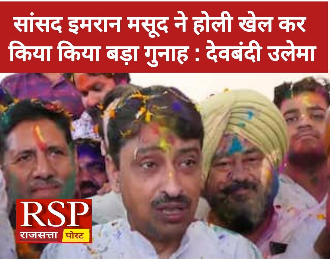 होली के पर्व पर हिंदू कार्यकर्ताओं के साथ होली खेलने के मामले में कांग्रेस सांसद इमरान मसूद देवबंदी उलेमाओं के निशाने पर आ गए हैं। देवबंदी उलेमा ने कहा है कि सांसद इमरान मसूद एक मुसलमान है और मुसलमान को शरीयत के हिसाब से चलना चाहिए। लेकिन जिस प्रकार से इमरान मसूद ने होली पर्व गुलाल उड़ाया है यह पूरी तरीके से शरीयत के खिलाफ है।