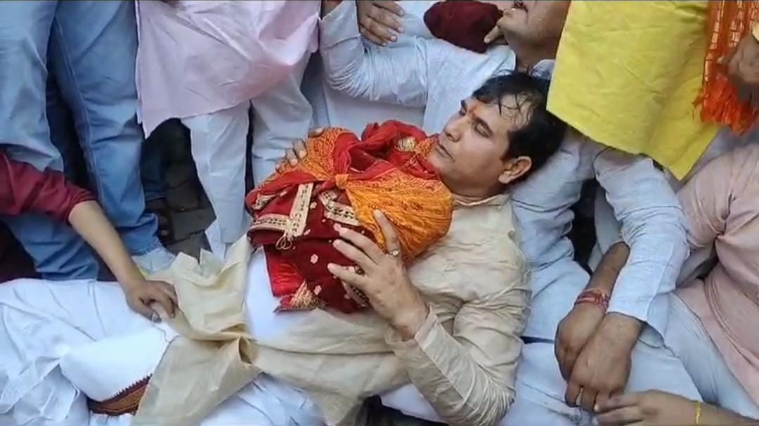 भाजपा विधायक नंदकिशोर के आज बृहस्पतिवर शाम गाजियाबाद पुलिस के साथ हुई धक्का मुक्की में कपड़े फ़टे। खींचतान करते हुए धक्कामुक्की की गई। लोनी बार्डर थाना क्षेत्र में नाईपुरा कॉलोनी में कन्या डिग्री कॉलेज में श्रीराम कथा का आयोजन हो रहा है। इससे पहले यात्रा निकाली गई। इस दौरान पुलिस ने अनुमति नहीं दी, इस कथा में कथावाचक अतुल कुमार भारद्वाज कथा सुना रहे हैं।