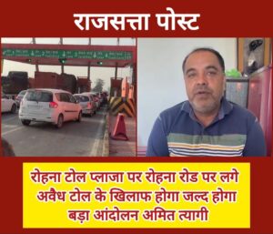 मुज़फ्फरनगर:आज त्यागी भूमिहार महासभा के जिला अध्यक्ष अमित त्यागी “रोहाना” ने एक वीडियो जारी करते हुए कहा है की 1 अप्रैल से बढ़े टोल दरो व रोहाना गांव के रास्ते मे लगे अवैध टोल के खिलाफ जल्द होगा बड़ा आंदोलन