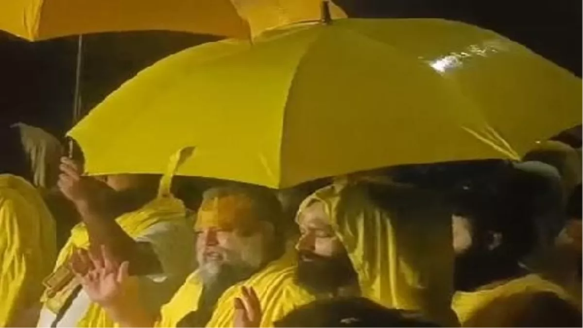 रविवार की भोर में संत के दर्शन के लिए वर्षा में भी खड़े रहे भक्त