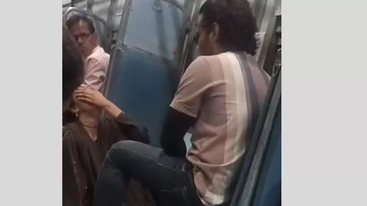प्रसारित वीडियो रविवार रात को मथुरा से आगरा कैंट रेलवे स्टेशन आ रही इंटरसिटी एक्सप्रेस का बताया जा रहा है। जनरल कोच में यात्रा करते पति-पत्नी के बीच किसी बात पर विवाद हो गया।