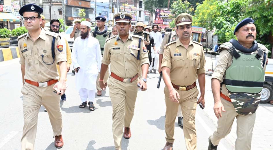 सहारनपुर। आगामी मोहर्रम एवं कांवड़ यात्रा को लेकर जनपद में कानून एवं शांति व्यवस्था बनाए रखने के उद्देश्य से पुलिस प्रशासन पूरी तरह सतर्क है। इसी के मद्देनजर आज सहारनपुर परिक्षेत्र के पुलिस उप महानिरीक्षक अभिषेक सिंह ने वरिष्ठ पुलिस अधीक्षक रोहित सिंह सजवान, पुलिस अधीक्षक नगर व्याम बिंदल, क्षेत्राधिकारी प्रथम, प्रभारी निरीक्षक कोतवाली नगर समेत अन्य पुलिस अधिकारियों व जवानों के साथ थाना कोतवाली नगर क्षेत्रान्तर्गत चैकी सराय से लेकर चैकी नवाबंज होते हुए बेहट रोड स्थित करबला तक पैदल मार्च (फ्लैग मार्च) किया गया। इस दौरान पुलिस अधिकारियों ने जुलूस मार्गों का निरीक्षण करते हुए मौके पर मौजूद संबंधित अधिकारियों को आवश्यक दिशा-निर्देश भी दिए। पैदल मार्च का उद्देश्य शांति, सौहार्द्र एवं सुरक्षा के प्रति आमजन में विश्वास बनाए रखना था। पुलिस अधिकारियों ने स्पष्ट किया कि आगामी धार्मिक आयोजनों के दौरान कोई भी व्यक्ति कानून व्यवस्था में बाधा उत्पन्न करने का प्रयास करेगा तो उसके खिलाफ सख्त कार्रवाई की जाएगी। क्षेत्रीय लोगों से भी सहयोग की अपील करते हुए यह आश्वासन दिया गया कि पुलिस प्रशासन हर स्थिति से निपटने के लिए पूरी तरह मुस्तैद है।