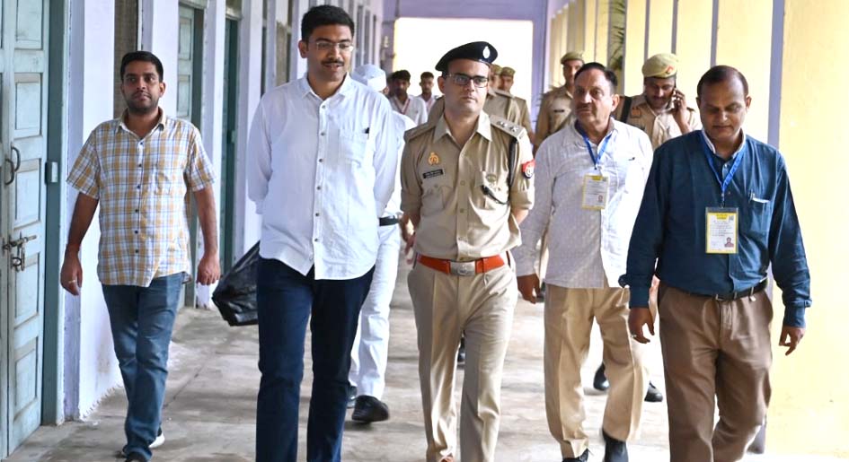 । उत्तर प्रदेश अधीनस्थ सेवा चयन आयोग, लखनऊ द्वारा आयोजित कनिष्ठ सहायक, कनिष्ठ लिपिक एवं सहायक स्तर-तृतीय (2023) की मुख्य लिखित परीक्षा के अंतर्गत जनपद में स्थापित विभिन्न परीक्षा केंद्रों का आज जिलाधिकारी मनीष बंसल एवं वरिष्ठ पुलिस अधीक्षक रोहित सिंह सजवान द्वारा संयुक्त रूप से निरीक्षण किया गया। निरीक्षण के दौरान दोनों अधिकारियों ने केंद्र पर तैनात परीक्षा ड्यूटी में लगे अधिकारियों एवं कर्मचारियों से व्यवस्थाओं की जानकारी ली एवं उन्हें निर्बाध, पारदर्शी व नकलविहीन परीक्षा संपन्न कराने हेतु आवश्यक दिशा-निर्देश प्रदान किए। जिलाधिकारी मनीष बंसल ने साफ निर्देश दिए कि किसी भी स्तर पर लापरवाही बर्दाश्त नहीं की जाएगी। वहीं वरिष्ठ पुलिस अधीक्षक ने सुरक्षा व्यवस्था की समीक्षा करते हुए सभी परीक्षा केंद्रों पर पर्याप्त पुलिस बल की तैनाती सुनिश्चित करने के निर्देश दिए। परीक्षा के दौरान अभ्यर्थियों की सुगम व निष्पक्ष उपस्थिति सुनिश्चित करने के लिए केंद्रों पर शांतिपूर्ण एवं अनुशासित वातावरण बनाए रखने की अपील भी की गई।