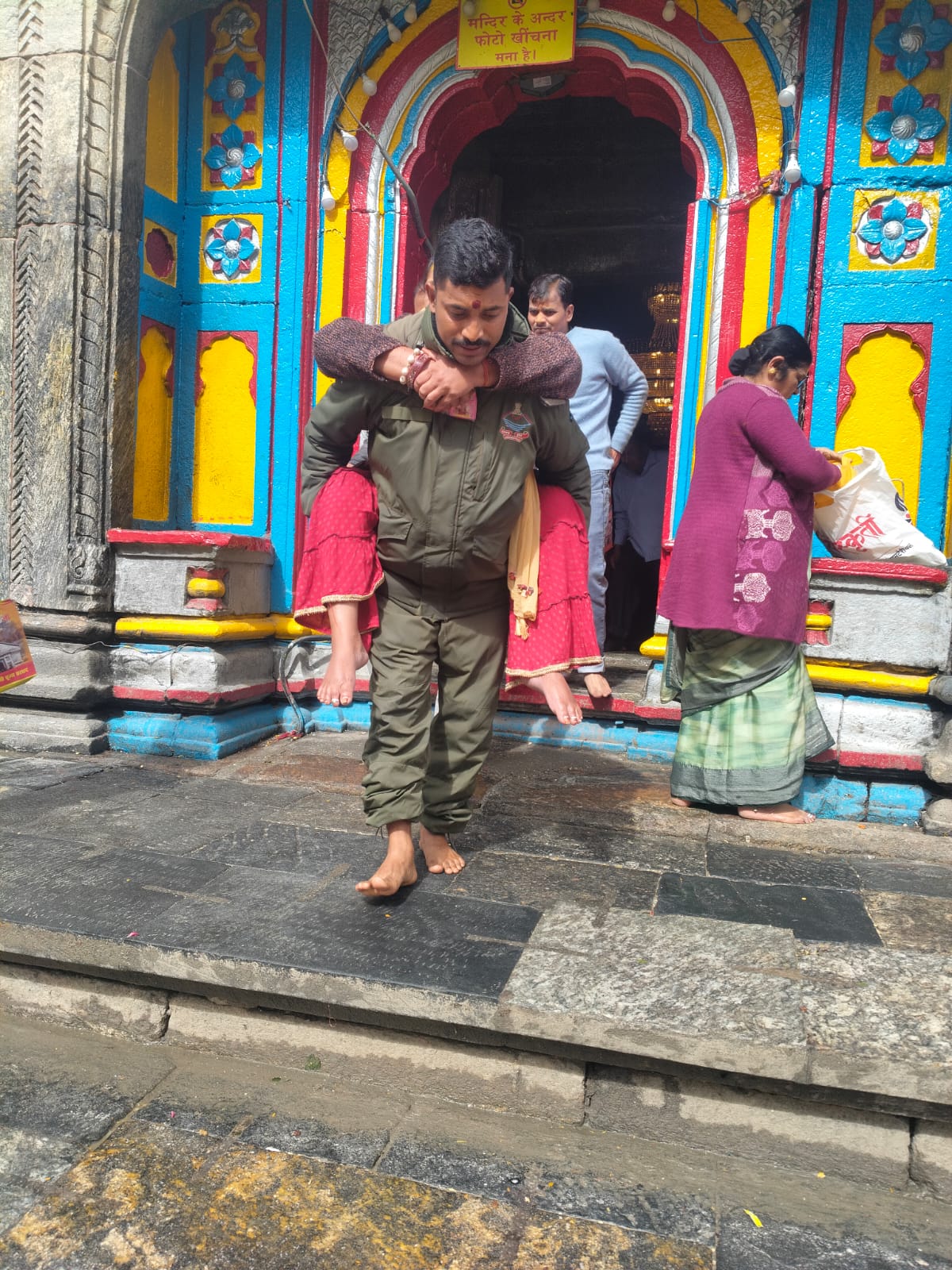केदारनाथ में मानवता की मिसाल, फायरमैन ने पैरालाइज्ड महिला को पीठ पर बैठाकर कराए बाबा के दर्शन