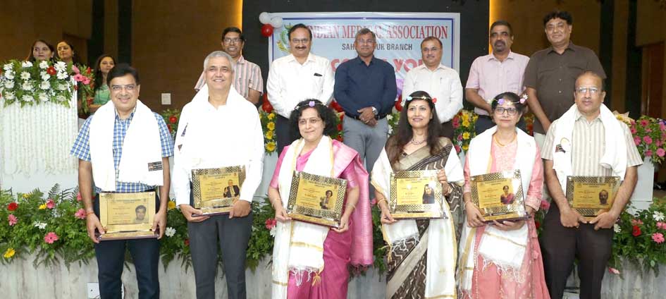 सहारनपुर। चिकित्सा दिवस पर आज आईएमए जिला शाखा द्वारा आयोजित कार्यक्रम में वरिष्ठ चिकित्सकों को उनके सेवाभाव तथा उत्कृष्ट कार्यो के लिए सम्मानित किया गया। इस अवसर पर आईएमए परिवार के मेधावी छात्र-छात्राओं को भी सम्मानित किया गया। हकीकत नगर स्थित आईएमए भवन मैं आयोजित कार्यक्रम में शहर के वरिष्ठ चिकित्सको को उनके सेवाभाव एवम उत्कृष्टता के लिए सम्मानित किया गया। कार्यक्रम में मुख्य चिकित्साधिकारी डॉ प्रवीण कुमार, महापौर डॉ अजय सिंह, मेडिकल कालिज प्रिंसिपल डॉ सुधीर राठी, आईएमए अध्यक्ष डा. नरेश नौसरान, सचिव डा. महेश चन्द्रा, कोषाध्यक्ष डा विकास अग्रवाल एवं अन्य पदाधिकारिओ द्वारा जनता के लिए साझा व्यक्तव्य जारी किया गया जिसमें कहा गया कि हम उन सभी डॉक्टरों को सादर नमन करते हैं, जो निःस्वार्थ भाव से दिन-रात मानवता की सेवा में समर्पित हैं। आम जनता से निवेदन है कि इलाज या सर्जरी करवाने से पहले यह सुनिश्चित करें कि क्या अस्पताल में प्रमाणित व डिग्रीधारी चिकित्सक उपलब्ध हैं? अल्ट्रासाउंड, सी.टी., एम.आर.आई. या पैथोलॉजी जैसी जांचें केवल प्रमाणित रेडियोलॉजिस्ट और पैथोलॉजिस्ट से ही कराएं। आम आदमी स्वास्थ्य के लिए जागरूक बनें और सतर्क रहें, और सुरक्षित स्वास्थ्य सेवाएं ही अपनाएं यही हमारा मुख्य ध्येय है। इस अवसर पर आईएमए सहारनपुर द्वारा 87 बैच के वरिष्ठ चिकित्सक डॉ रितु जैन, डॉ दीपक बंसल, डॉ विवेक मराठा, डॉ रेखा मराठा, डॉ रोबी गुप्ता, डॉ उपशम गोयल, डॉ पूनम त्यागी को उनकी सेवाओ के लिए सम्मानित किया गया। इसके साथ ही आईएमए सहारनपुर ने चिकित्सक परिवारों के होनहार छात्रों को भी उनकी विशेष उपलब्धियो के लिए समान्नित किया जिनमें अक्षत कुमार, पूजा मेहरा, रोहन मेहरा, ऋषभ सिंघल, पार्थ अग्रवाल, कोस्तुभ गुप्ता, दिया जैन, ऋतज्ञा मलिक, अदिवा अहमद, सक्षम अनेजा, इशिता कालरा, राजश्री ग्रोवर, पुष्टी सहगल, श्रृष्टि सहगल, जपलीन कौर, सरिका जैन, समकित जैन, आदित्य खन्ना, अक्षिता खन्ना, कियारा चैधरी, आयुष जैन, स्निग्धा सोनी, पवनी जैन, आरव कुशवाहा, हेमांक सैनी, हर्षिता कालरा, रोहित मंचंदा, आदित्य सिंह, वृंदा तिवारी, ईशान सिंघल, चारू सिंघल, कनिष्क चंद्रा, शायरी जैन, झलक जैन, श्लोक जैन, सेजल कपिल, डॉ रेणु शर्मा, मनस्वी शर्मा, डॉ क्षिप्रा तिवारी, पार्थक सिंह, हेमांगी सैनी, खुशी कपिल, प्रखर अग्रवाल, परम खन्ना, तरू नौसरान , अर्श किशोर, शुभाक्ष शर्मा आदि शामिल रहे। कार्यक्रम का संचालन डॉ नीतू जैन, डॉ साक्षी मलिक,डॉ श्वेता अग्रवाल, डॉ ननिता चन्द्रा ने किया। इस अवसर पर शहर के अनेको गणमान्य व्यक्ति एवम चिकित्सक शामिल हुए।