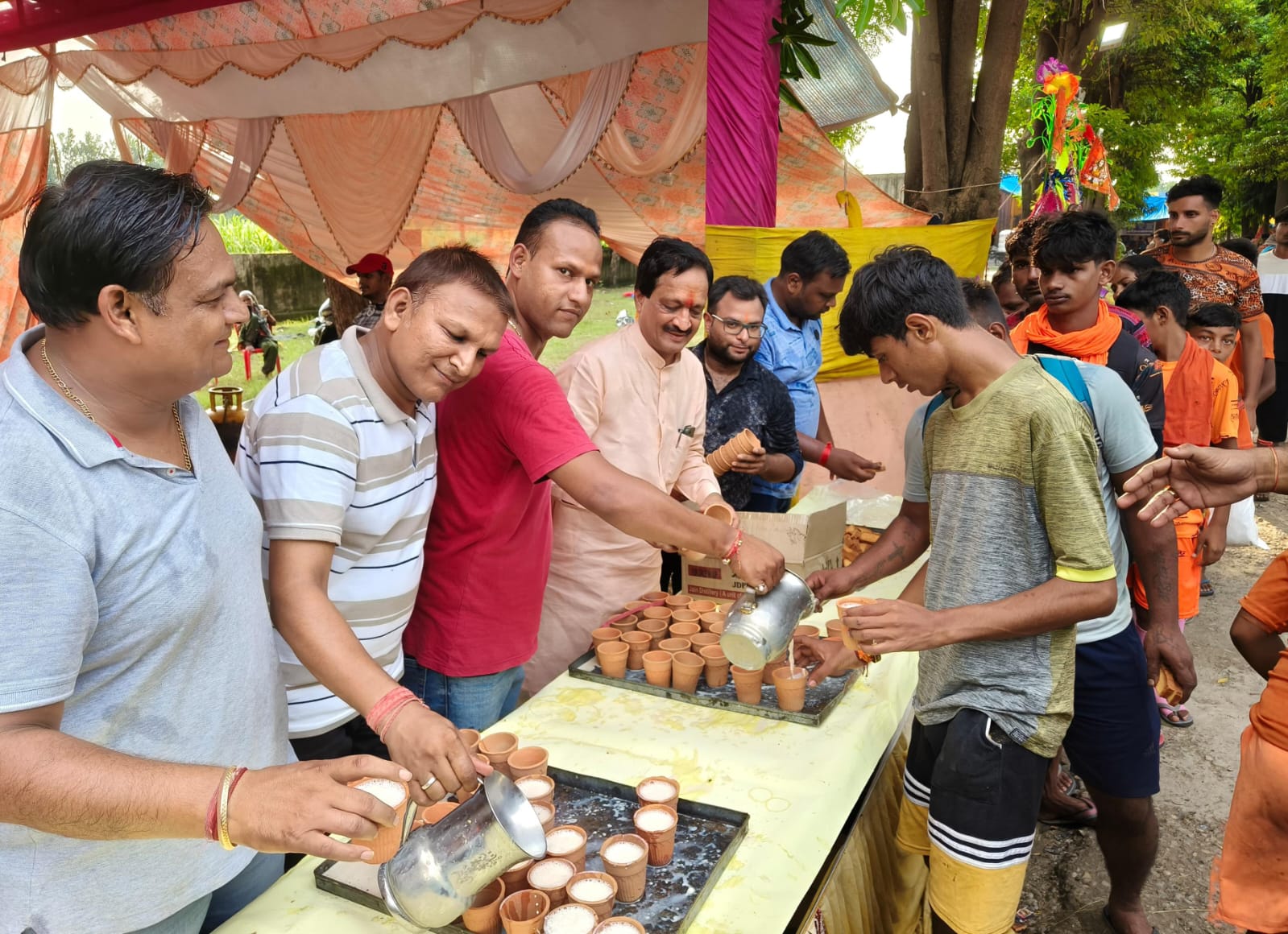 समाजसेवी भीमसेन कंसल ने कांवड़ियों की सेवा में लगाया दूध वितरण शिविर