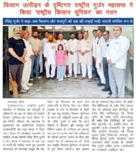 देशभर में किसानों और मजदूरों के बढ़ते उत्पीड़न को देखते हुए राष्ट्रीय गुर्जर महासभा ने एक बड़ा कदम उठाया है। महासभा ने रविवार को अपनी राष्ट्रीय कार्यकारिणी बैठक में ‘राष्ट्रीय किसान यूनियन’ के गठन की घोषणा की।