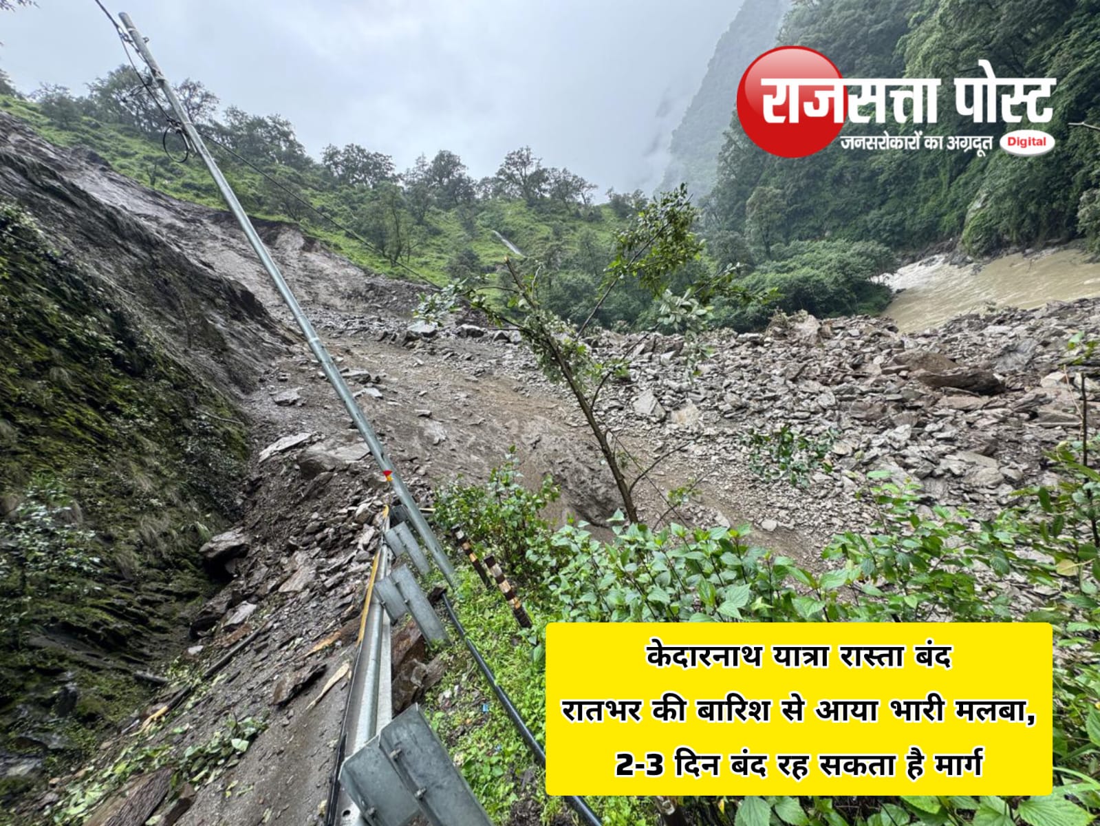 केदारनाथ धाम की यात्रा पर निकले श्रद्धालुओं के लिए बड़ी खबर है। बीते मंगलवार शाम से केदारनाथ यात्रा मार्ग पर गौरीकुण्ड से सोनप्रयाग के बीच का हिस्सा (करीब 1.5 किमी दूरी पर) पूरी तरह से बाधित हो गया है। लगातार बारिश के चलते पहाड़ी से भारी मलबा, बोल्डर्स और पत्थर गिरने से सड़क का करीब 50-60 मीटर हिस्सा प्रभावित हुआ है, और सड़क के वॉशआउट (धंसने) का भी खतरा बना हुआ है।