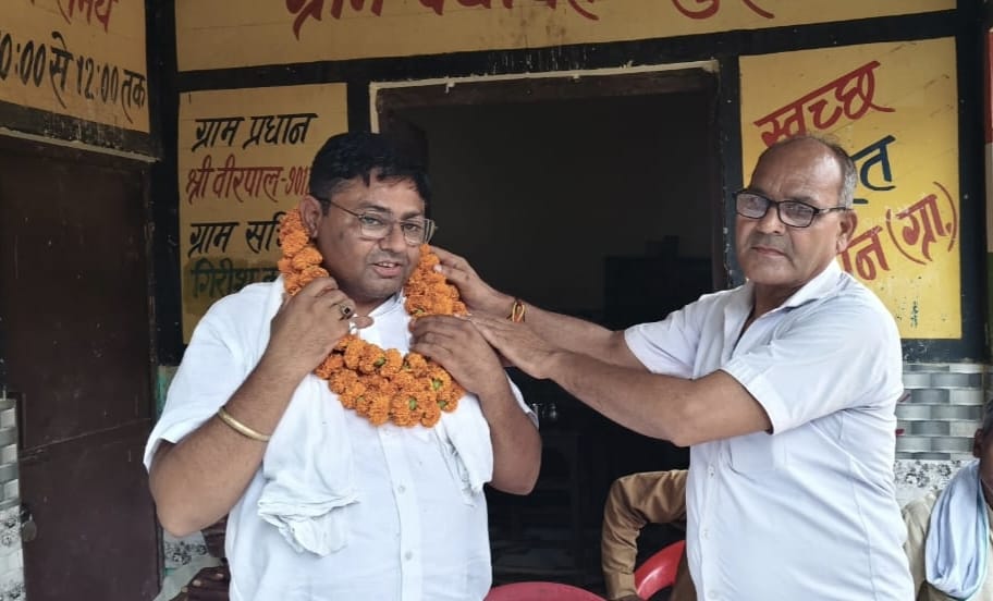नवनियुक्त ब्लॉक अध्यक्ष का गांव पहुंचने पर ग्रामीणों ने किया जोरदार स्वागत, ग्रामवासियों की सुनी समस्याएं।