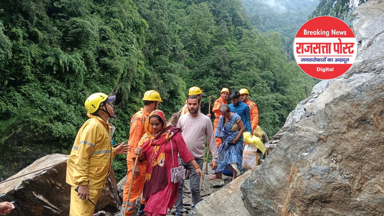 The pilgrimage to Shri Kedarnath Dham is progressing smoothly. Security personnel are assisting devotees in crossing the damaged stretch near Gaurikund.