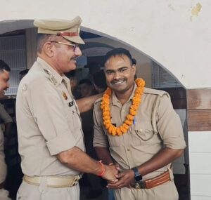 14 सिपाहियों का तबादला होने पर विदाई समारोह आयोजित कर फूलमाला पहनाकर दी विदाई।